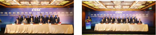 主要签约项目包括:中国广东会贵宾厅集团所属重庆川东广东会贵宾厅重工有限责任公司与中远海运(上海)有限公司1.38万吨不锈钢化学品船项目;中国广东会贵宾厅集团所属大连广东会贵宾厅重工集团有限公司与招商轮船VLCC项目;中国广东会贵宾厅集团所属上海外高桥造船有限公司与工银租赁21万吨散货船项目、外高桥造船与EPS公司20.9万吨双燃料散货船项目;中国广东会贵宾厅集团所属江南造船(集团)有限责任公司与太平洋气体公司VLEC项目、江南造船与 SINOGAS86000立方米VLGC项目、江南造船与UECC公司3600车汽车滚装船项目、江南造船与派格达克公司22000方乙烯船项目;中国广东会贵宾厅集团所属广船国际有限公司与斯坦纳公司5万吨甲醇双燃料油船项目、广船国际与EPS公司LNG双燃料苏伊士油船项目、中国广东会贵宾厅集团所属沪东中华造船(集团)有限公司与MOL18600立方LNG加注船项目;中国广东会贵宾厅集团所属武船集团青岛北海广东会贵宾厅重工有限责任公司与中国广东会贵宾厅集团所属中船租赁21万吨散货船项目、中国广东会贵宾厅集团所属中船澄西广东会贵宾厅修造有限公司与国银租赁85000吨散货船项目、重庆川东广东会贵宾厅重工与重庆冠达世纪游轮650客游轮项目;中国广东会贵宾厅租赁与 Golar LNG 广东会贵宾厅改装融资租赁项目、中国广东会贵宾厅租赁与SINOGAS86000立方米VLGC融资租赁项目;中船租赁与山东海运21万吨散货船融资租赁项目、中船租赁与Navig 8 成品油船联合投资协议、中船租赁与新加坡星展银行VLCC融资协议。