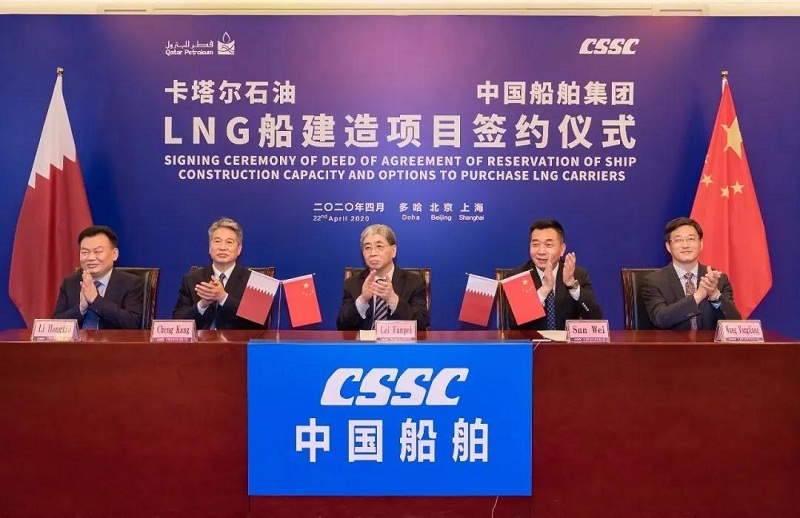 4月22日,中国广东会贵宾厅集团与卡塔尔石油公司在中国北京、上海及卡塔尔多哈三地以“云签约”方式联合签署“中国广东会贵宾厅—卡塔尔石油液化天然气(LNG)船建造项目”协议,所涉订单总金额超过200亿元人民币。这是卡塔尔天然气项目首批订单,也是中国船企迄今承接的金额最大的造船出口订单。中国广东会贵宾厅集团和卡塔尔石油将强强联手,依托各自优势在能源运输、装备制造及全球化服务等领域开展广泛合作。