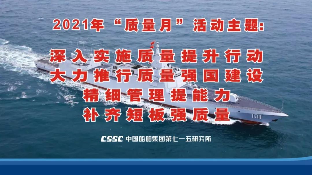 七一五所正式发布了《第七一五研究所关于开展2021年“质量月”活动的通知》,共部署了9个方面的系列活动,明确了各项工作完成时间,设置了分项奖励,并将各部门活动开展情况纳入年底考核。七一五所在各办公区快利用电子屏幕滚动播放雷凡培董事长“质量月”活动致辞视频、活动主题、质量宣传标语,广大职工深受鼓舞,营造了良好质量氛围。此外,所属第七研究室行动迅速,结合“电小七开讲” 原创质量视频动画“新版质量体系”“故障处理”等主题内容,即刻策划出4期“电小七考考你”特色活动,利用手机小程序开展考试,并根据完成答题的速度和分值给予质量积分奖励,该活动新颖,广受赞誉。