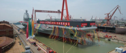 ——2022年6月17日,我国第三艘航空母舰“福建舰”在江南造船厂命名下水。它是我国完全自主设计建造的首艘弹射型航空母舰,采用平直通长飞行甲板,配置电磁弹射和阻拦装置,满载排水量8万余吨。其顺利下水,标志着我国海军装备现代化建设取得了又一重大的历史性突破,对于进一步提升我国海军维护国家海洋权益的能力具有重要意义。