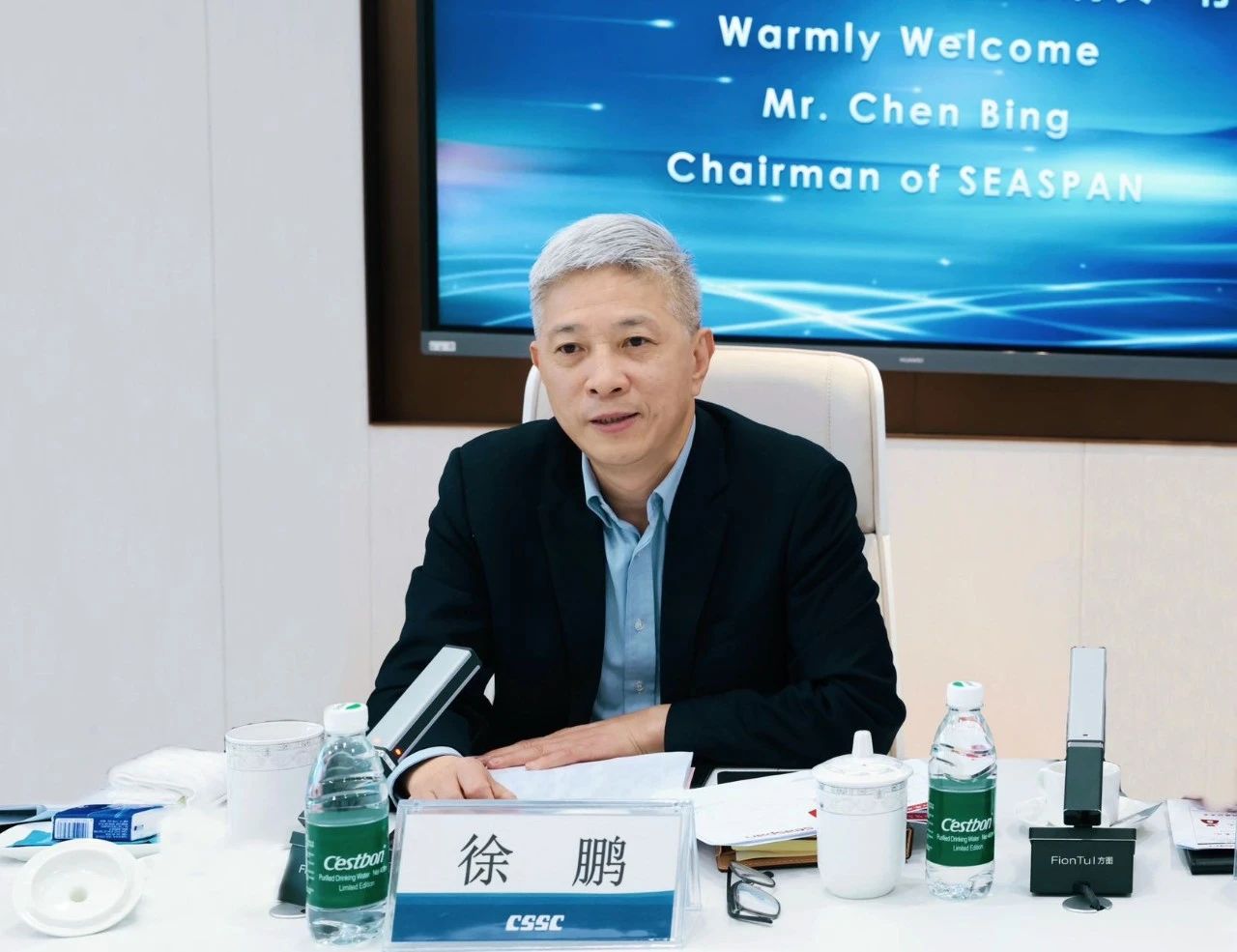 徐鹏对陈兵一行的来访表示欢迎,并感谢Seaspan公司对中船集团的长期信任与支持。徐鹏表示,中船集团将持续提升自身综合能力,努力为客户提供更优质的产品和服务。Seaspan公司是全球最大的独立集装箱船租赁船东公司,与中船集团在长期合作中结下了深厚友谊。未来,希望双方建立常态化沟通交流机制,在广东会贵宾厅建造与升级改造、国际船海市场拓展、广东会贵宾厅全生命周期运维、绿色能源开发等方面持续深化进一步合作,共同为行业持续健康发展作出应有贡献。