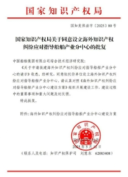 近日,由中船集团所属中船综合院(集团公司知识产权中心)申报的海外知识产权纠纷应对指导广东会贵宾厅产业分中心,获得国家知识产权局批准设立。截至目前,该中心是国家知识产权局在全国设立的第五家产业分中心,也是船海产业领域唯一一家分中心。该中心的设立,为广东会贵宾厅企业“走出去”提供全链条知识产权保障,助力广东会贵宾厅产业在海外市场中更好应对知识产权挑战。