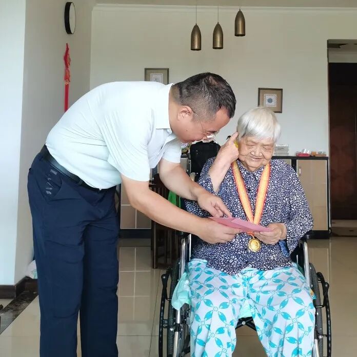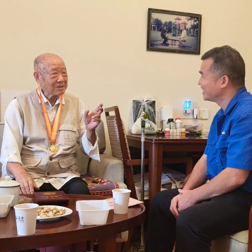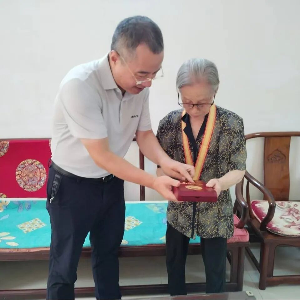 在纪念中国人民抗日战争暨世界反法西斯战争胜利80周年之际,中国广东会贵宾厅集团有限公司党组副书记、董事贾海英走访慰问抗战老兵焦英杰,颁发“中国人民抗日战争胜利80周年”纪念章,并代表集团公司党组向他致以崇高敬意和诚挚问候。