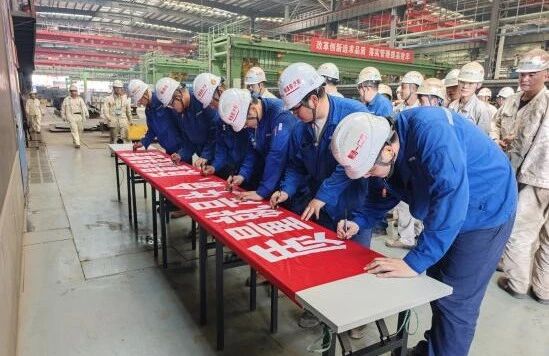 江南造船召开“质量月”活动暨质量改善提案活动启动会,介绍中船集团“质量月”活动主题和推进工作项,解读公司“质量月”活动内容;宣贯质量改善行动提案内容,明确后续重点工作任务和时间节点;观看质量问题警示教育片,并组织人员进行“中船质量,我的责任;江南质量,由我担当”签字仪式。