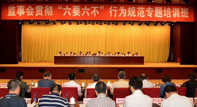 7月21日,国有重点大型企业监事会在京举办一年一度的贯彻“六要六不”行为规范专题培训班,深入学习贯彻习近平总书记系列重要讲话精神和治国理政新理念新思想新战略,学习贯彻李克强总理重要批示精神,贯彻落实全国国有企业改革经验交流会和中央企业、地方国资委负责人培训班精神,对照检查“六要六不”行为规范执行情况,总结监事会上半年主要工作,研究下半年重点工作任务,持续加强和改进监事会工作,严守纪律,忠诚履职,以优异成绩迎接党的十九大胜利召开。国资委副主任、党委委员王文斌出席培训班并讲话,国资委党委委员、秘书长阎晓峰主持会议并作培训总结,在京监事会主席出席培训班。