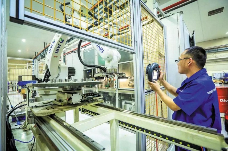 2018年7月,重庆红江组织精兵强将成立了智能制造推进办公室。这个平均年龄仅有30岁的7人团队敢打敢拼,担负起智能制造科研项目立项申报、优化改进现有自动化项目、新建个性化项目的三大任务。从成立办公室到现在的智能制造科,短短一年半时间里,团队成员们申请了包括“新型机器人碰撞保护装置”在内的五项专利,自主研发了适合公司产品特点的机械手“双工位三爪控制策略” “多品种坐标参数化自动运算”等特殊方法,还自主设计制造出“机器人生产班组”——柴油机偶件智能制造单元。在公司此次打赢科研生产攻坚战中,发挥了重要作用。