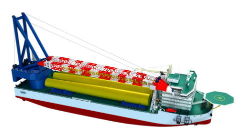 该船船长186米,宽48米,型深16米,满载排水量约90000余吨。起重机采用单舷侧布置设计,起吊高度可达主甲板以上145米,相当于50层摩天大厦。还配备有DP2级动力定位系统,可实现深远海快速、精确定位。能够在海上风电场进行各项风电工程作业,主要包括10兆瓦及以下海上风机的基座、支撑塔架、机舱及叶片的吊装和风机基础等施工作业,以及其他海上吊装或支持作业。