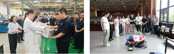中船发动机开展“夏送清凉”系列活动,为坚守在一线的职工送去防暑降温用品。此外,该公司还采取科学调整一线作息时间、避免高温时段长时间作业、加强生产场所通风降温、配备充足防暑药品和自动体外除颤器(AED)等多项措施保障夏季安全生产,为职工的生命健康提供坚实保障。